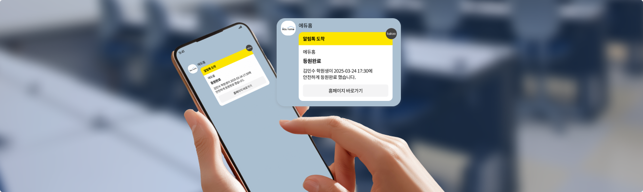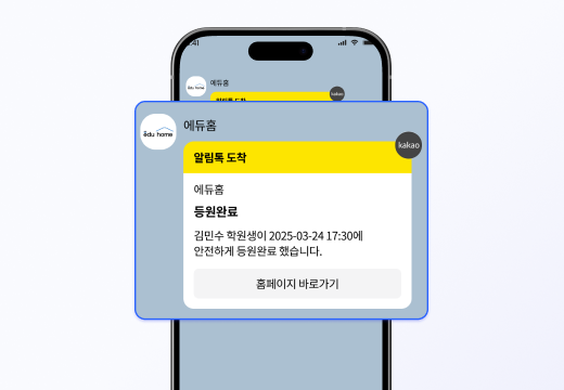 학부모님께 등하원 개별 연락을 드리지 않아도, 실시간 출결 상황 메시지가 곧바로 자동 발송되어 학원 운영의 시간을 더욱 절약해볼 수 있습니다.