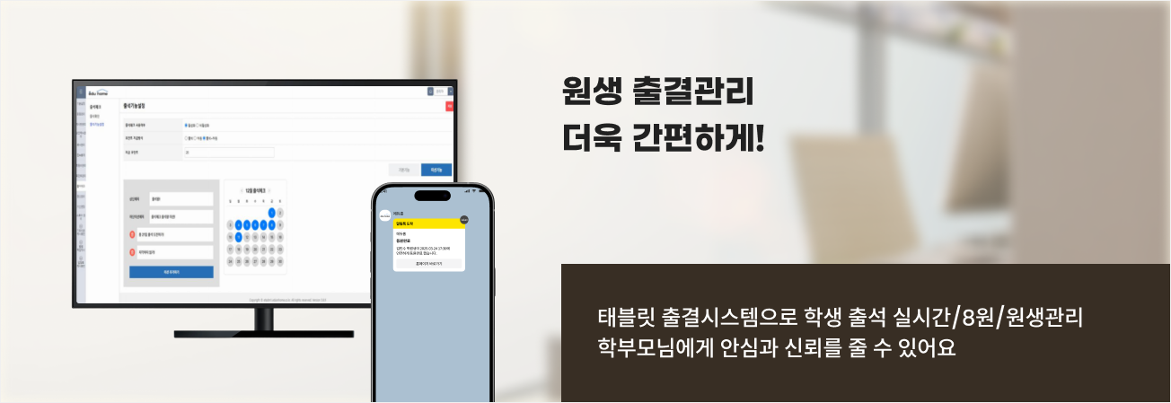 원생이 출석체크하면 바로 확인 가능합니다.