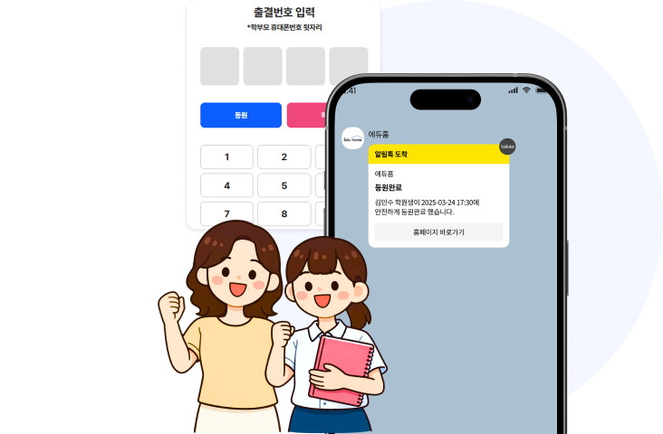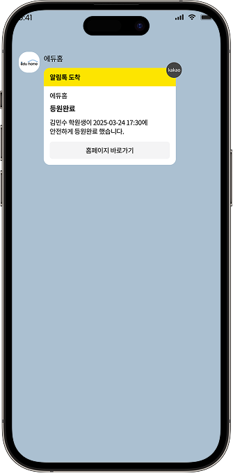 우리 아이 등 / 하원 걱정하지 마세요. 알림톡으로 바로 알려드려요! 학부모님에게 안심과 신뢰를 줄 수 있어요!